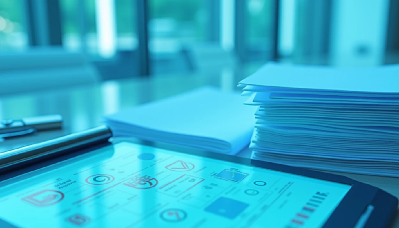 Eine Person schreibt mit einem Stift auf einem Schreibtisch neben einem Klemmbrett und einer Uhr in einer hell erleuchteten Büroumgebung an einem Dokument - vielleicht bearbeitet sie Dokumente für die handelndenhaftung GmbH in Gründung.